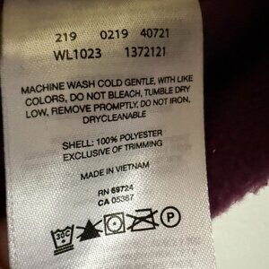 Lightweight fleece vest. Full front zipper and two zippered hand pockets. Garment ends at the waist.