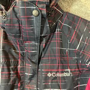 Columbia Black Maroon Plaid Shell Parka Jacket Rain Coat Waterproof S Small