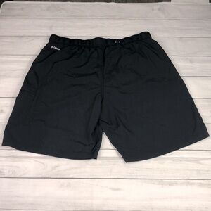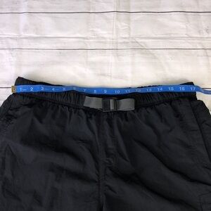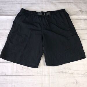 Columbia Black Omni Care Shorts SZ L These shorts have an adjustable buckle/band on front. Side pockets and a zippered pocket on the back as well.