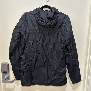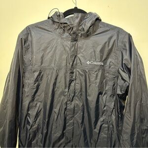 Columbia Black Omni-Shield Full-Zip Hooded Rain Jacket. Has front pockets with zippers as shown in photos above. Has a couple of marks on the back shoulder. As shown in photos above. In otherwise great preowned condition. Feel free to make a reasonable offer through the offer button!