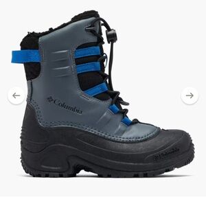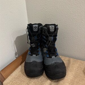 Sturdy Columbia kids snow boots. Black and gray with blue details. Perfect for winter adventures. Very good condition.