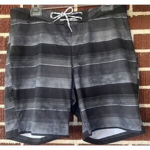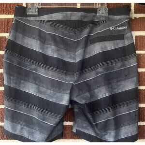 Get ready for your next beach or outdoor adventure with these Columbia board shorts. The black and gray striped pattern adds a stylish touch to these comfortable shorts, which are made of polyester and elastane. With a size of 32 and a regular fit, these shorts are perfect for any lifeguard, surfer, or recreational enthusiast.