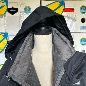 Stay warm with this stylish Columbia jacket. Features a hood and full zip closure. Perfect for outdoor adventures.only worn once , has the extra zipper insert that can be removed