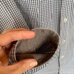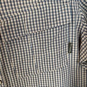 Here is a fun Columbia Blue Checked Long Sleeve Button Down Top size large that is in good used condition with minimal signs of wear.