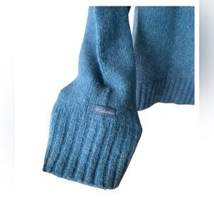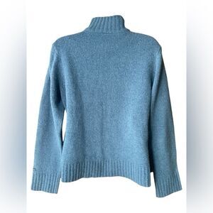 Columbia Blue Knit Zip Cardigan Sz M Embroidered Flowers Long Sleeve Work Casual Good Condition