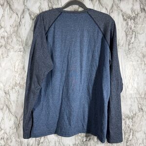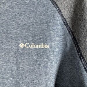 This Columbia long sleeve tee features a stylish two-tone blue design with a heathered body and contrasting navy sleeves. Crafted from lightweight, breathable fabric, it's perfect for both athletic activities and casual wear. The raglan sleeves and crew neck add a touch of sporty elegance, making it a versatile addition to your wardrobe.