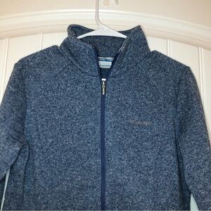 Columbia Blue Long Sleeve Zip-Up Sweater. Has two front pockets. Has some pilling in the inside. In otherwise great preowned. Feel free to make a reasonable offer through the offer button!