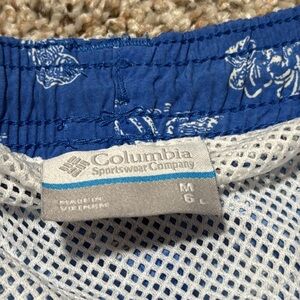 Experience the perfect blend of style and comfort with Columbia's swim trunks, featuring a vibrant blue base adorned with a playful white bicycle pattern. These trunks are designed for those who love to make a splash with their unique and eye-catching swimwear. Ideal for beach outings or poolside relaxation, they offer a fun and summery vibe.