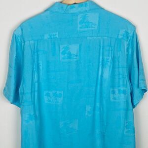 Columbia Blue River Lodge Palm Hawaiian Short Sleeve Button Up Shirt, Size M