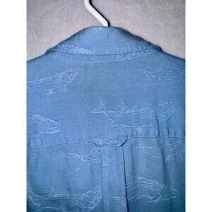 Columbia Blue Short Sleeve Shirt Button w/ All Over Textured Whale Print Mens XL. Shirt is in excellent condition. Look closely at photos to see the subtle whale Print. Please see photos as they are part of the item description-photos are always of the exact item you will receive. All items are from a smoke free home.
