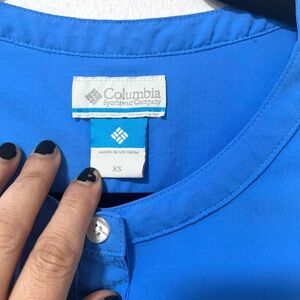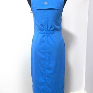 This pre-owned blue dress from Columbia features a sleeveless design, crew neck, and seamless side pockets, ideal for casual outings or days by the water. Its sheath style and midi length offer a modern, versatile look, perfect for any outdoor girl's wardrobe. Made of 100% polyester.