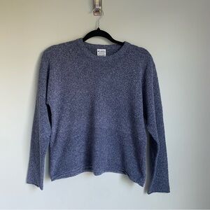 Columbia Blue Terry Cloth Long Sleeve Crew Neck Tight Knit Pullover Sweater