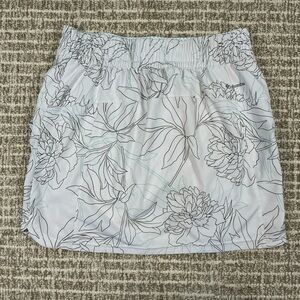 This Women's Columbia Pull-on Pockets Sport Skort in size medium is a versatile piece of activewear perfect for outdoor activities like tennis, golf, or hiking. The solid white color with green and blue floral print The blend of polyester and nylon makes it comfortable and stretchy, while the short skirt length adds a touch of style. With convenient pockets and an athletic fit, this skort is both functional and fashionable, suitable for wearing during the summer, fall, or spring seasons. Made by Columbia, a trusted brand known for quality outdoor gear, this skort is a practical choice for the active woman on the go.