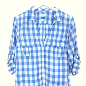 Columbia Blue and White Plaid Button Down Shirt