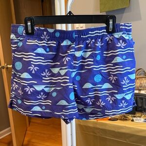 Sandy River I printed short 3” inseam with rear zip pocket and side pockets. Vibrant shorts with a tropical pattern. Features blue and white colors. Perfect for casual wear.