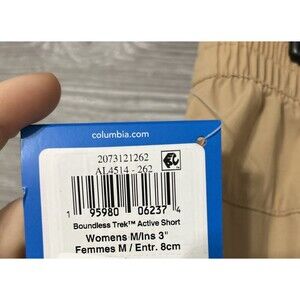 The Columbia Boundless Trek Active Shorts are designed for women in size M with a solid tan color. Made of nylon and elastane, these shorts have a 3-inch inseam and feature Omni-shade technology for sun protection. They are versatile for various outdoor activities like hiking, camping, fishing, and trail adventures. The brand Columbia is known for its quality outdoor clothing, making these shorts a reliable and stylish choice for any outdoor enthusiast.