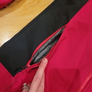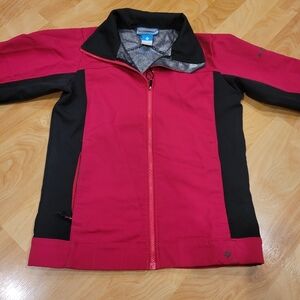 Super great lighter weight coat option. Omni Heat interior for extra warmth. Minor wear shown at wrists. Zipper pockets. No hood. Water resistant. Beautiful Raspberry color. Size 14/16. Could fit a women's small as well.
