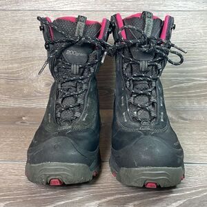 Columbia Bugaboot Techlite Women’s Sz 7 Black Pink Warm 200g Waterproof Winter Snow Boots in very good condition. Great tread and 200 gram insulated to keep you warm. Waterproof to keep you dry and Omni grip tread with techlite technology. Get these awesome winter boots today.