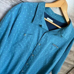 Columbia Button Down Fishing Shirt Teal Blue Green Men's 3XT great preworn condition