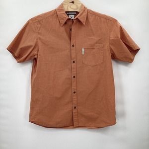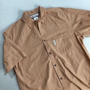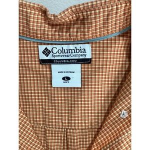 Columbia Button Down Men's Large Orange Check Short Sleeve Cotton Sportswear