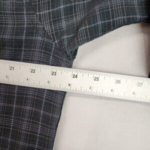 This shirt is in excellent condition. Very clean, well cared for. One zippered chest pocket. This is a dressier shirt, suitable for casual business or everyday. The modal fabric is super soft, absorbent and eco friendly.
