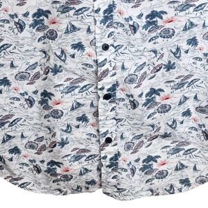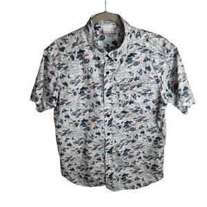 Columbia Regular Fit Button Down Shirt Short Sleeve Men's Size Medium in a Beach Umbrella/Palm Tree/Sailboat Print.