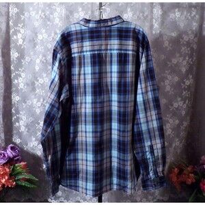 Columbia Button Down Shirt Size XL Blue Black Plaid Long Sleeve Cabin Cotton