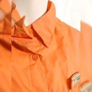 Columbia Button Down Short Sleeve Collar Zipper Pocket Orange Shirt L