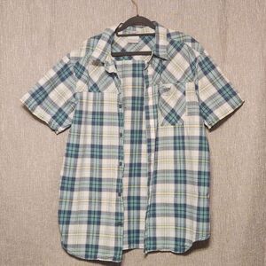 Columbia Button Down Short Sleeve Plaid Business Casual Cotton Mens Large