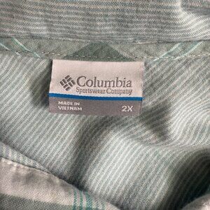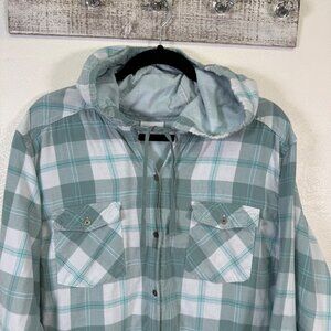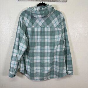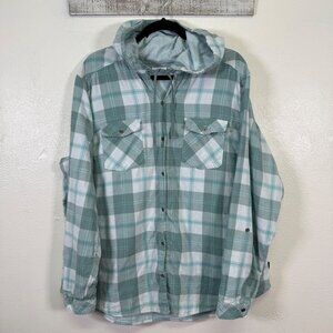 Columbia Button Front Green Plaid Hoodie Flannel Shirt 2x Layer Outdoor Cotton