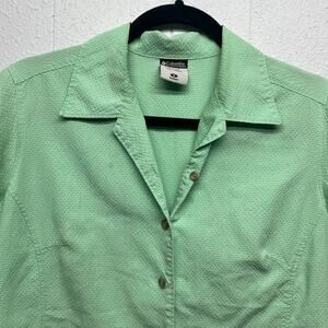Columbia Button Front Green Short Sleeve Women's Top Size Medium Outdoor Hiking