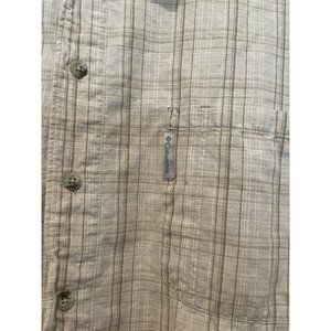 Columbia Button Front Shirt Men's 2XL White Brown White Plaid. Good condition, one stain please see pictures. Smoke free home