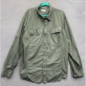 Columbia Button Up Shirt Men's 100% Nylon Omni-Shade Sun Protection Green XL