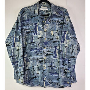 Columbia Button Up Shirt Men's Size Medium Fish Print Trout Fishing Long Sleeve