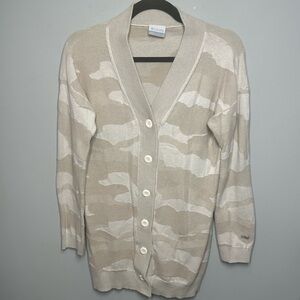 Columbia Camo Button Front Firwood Sweater Cardigan In Cream Tan, Size M