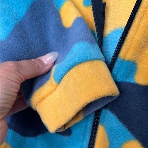 Experience the perfect blend of style and comfort with the Columbia Camo Sweatshirt. This striking piece features a bold blue and orange camouflage pattern, a high collar for added warmth, and a sporty design that ensures both functionality and modern appeal. Boys size small 8. Worn a handful of times. No holes or stains.
