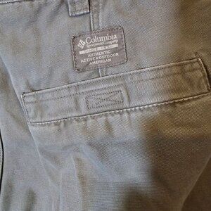Durable and stylish, Columbia Canvas Hiking Pants in size 36X32, khaki color, and straight-leg fit are ideal for any outdoor adventure.