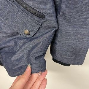 Style: Blue Insulated Winter Jacket with Omni-Heat Technology. Hip Length. 5 Exterior Pockets. Fleece Lined Hood. Outdoors, Adventure, Winter, Ski, Snowboard, Snow, Water Resistant