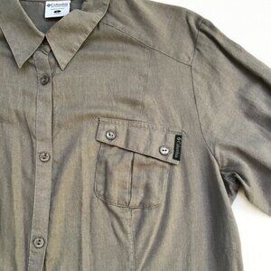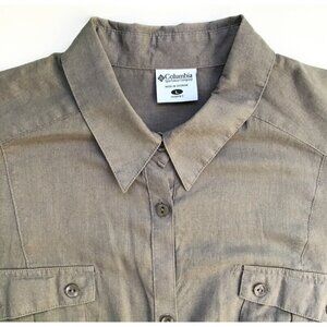 Columbia Casual Button Up Shirt Women's Large Gray Linen Roll Tab Sleeve Pockets