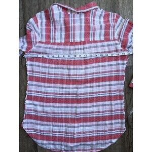 Columbia Casual Red Striped Long Sleeve Button-Up Shirt 100% Cotton Sku11