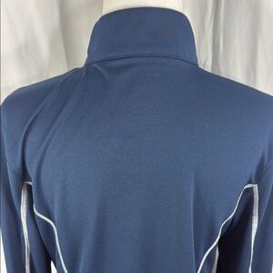 Columbia navy pullover with white piping. Features quarter-zip and logo accents. PreOwned