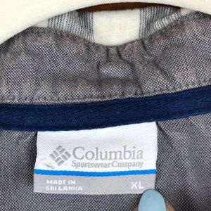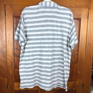 Columbia Striped Gray & Off-White Short Sleeve Collared T-Shirt. Condition: pre-owned good, no flaws or stains.