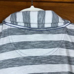 Columbia Coastal Striped Gray & Off-White Short Sleeve Collared T-Shirt Athletic