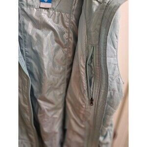 Lightweight Columbia jacket with omni-heat liner. Light Blue color. Inside pocket with zipper. Really warm for being so lightweight. No hood.