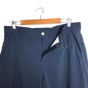 Refresh your warm weather wardrobe staples with these stylish, versatile & sustainably made Columbia Men's Grander Marlin II Offshore PFG Performance Shorts in solid, neutral collegiate navy blue. Crafted with a stretch, lightweight, stain repellent & breathable 88% polyester, &12% elastane fabric blend to keep you comfortable. In excellent like preowned condition, no stains or tears.