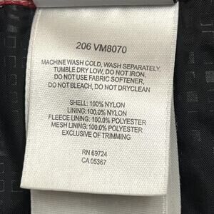 Materials (per tag): Shell 100% nylon; lining 100% nylon; fleece lining 100% polyester; mesh lining 100% polyester.