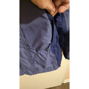 The Columbia Core Interchange Jacket is a versatile 3-in-1 jacket designed for women in size small. Made with a durable nylon outer shell and lined with nylon, this jacket features a full zip and snap closure, making it perfect for all seasons. The jacket's vintage design includes embroidered accents and a solid blue color, ideal for outdoor activities or everyday casual wear. With its athletic fit and mid-length design, this Columbia jacket is a stylish and practical addition to any wardrobe.