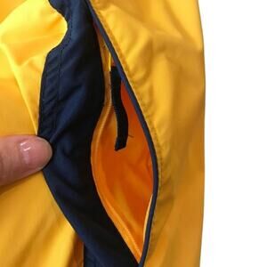 Preowned and in good condition, no tears or holes were found. 2 areas of flaws were found. Please see the ladt pictures for details. 1st area is on the right back at the hem line. Light mark found on right front about 2" above the hem.