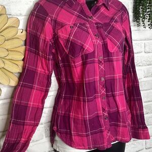 Columbia Cotton Flannel Plaid Button Down Shirt Top Oversized XS