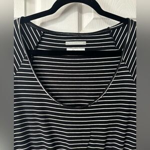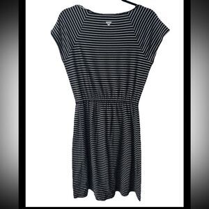 Columbia Cotton Jersey Stretch Black White Stripe Cap Sleeve Sheath Dress Small